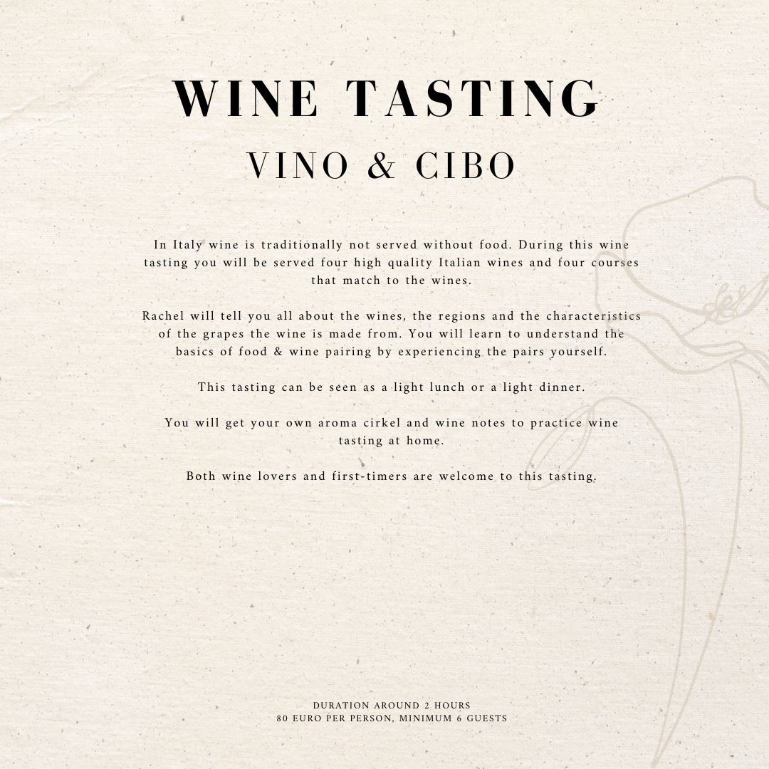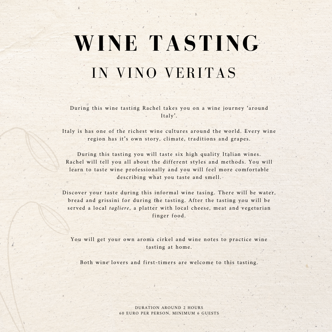 Rachel is a vinoloog, a graduate from the Wine Academy in the Netherlands. Book a wine experience while you are staying at Il Posto and she will happily guide you through the world of wines. There is also the possibility to visit wineries in the area. Great estates are just around the corner.